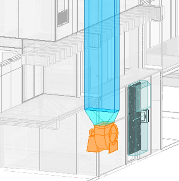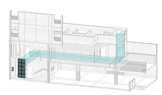 Diante das restrições arquitetônicas do empreendimento, foi necessário desenvolver uma solução integrada com a equipe de arquitetura para incorporar a tomada de ar à fachada, garantindo simultaneamente o afastamento de fontes de contaminação, a eficiência aerodinâmica da captação e a conformidade estética do projeto.