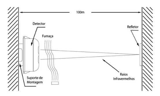 O detector linear de fumaça é um sistema que utiliza um feixe de luz — geralmente infravermelho — emitido de uma unidade transmissora para uma unidade receptora posicionadas em lados opostos de uma área protegida. Quando a fumaça interrompe ou reduz a intensidade desse feixe, o sistema detecta a presença do incêndio.