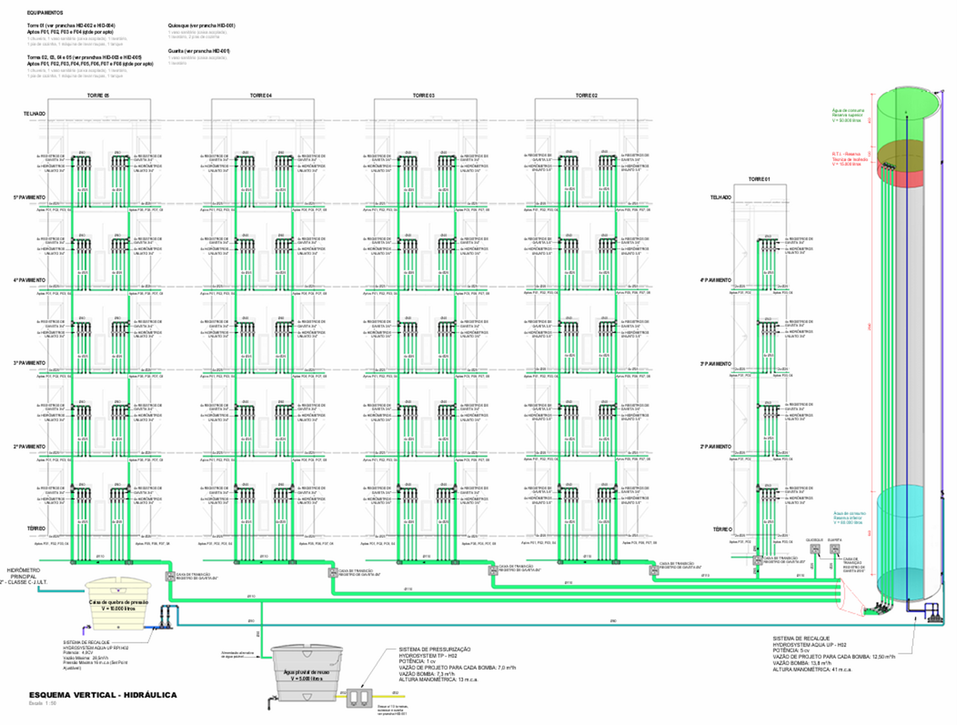 Para ilustrar como os critérios de dimensionamento se aplicam na prática em um projeto hidrossanitário, pode-se destacar um empreendimento residencial, que contou com as soluções em projetos da BFS Engenharia: